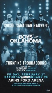 | The clamor from fans to personally experience the much-anticipated return of Cross Canadian Ragweed remains at top volume. Following a string of sold-out stadium shows with Turnpike Troubadours in 2025, Cross Canadian Ragweed and Turnpike Troubadours recently announced The Boys From Oklahoma show at the Akins Ford Arena in Athens, GA on Saturday, February 28, 2026 with special guest Shelby Stone. Following the trend of past BFOK shows, demand for tickets outgrew a one-show capacity so a second show has now been added on Friday, February 27th with special guests The Castellows. Fans can sign up for presale tickets to the additional show now through January 13th at 5pm. http://www.theboysfromoklahoma.com |